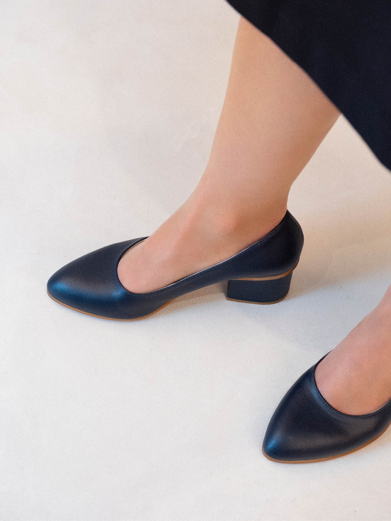 The Brussels Airlines staff – from management to the cabin crew – put our initial designs through their paces. They were insistent. Fit and comfort are non-negotiable, especially at an altitude of 10,000 metres. Imagine having to smile politely at passengers through gritted teeth because your feet hurt. Which is why Brussels Airlines is offering its cabin crew and airport staff a choice of five different Atelier Content models: pumps with three different heel heights plus a flat shoe and a ballerina.