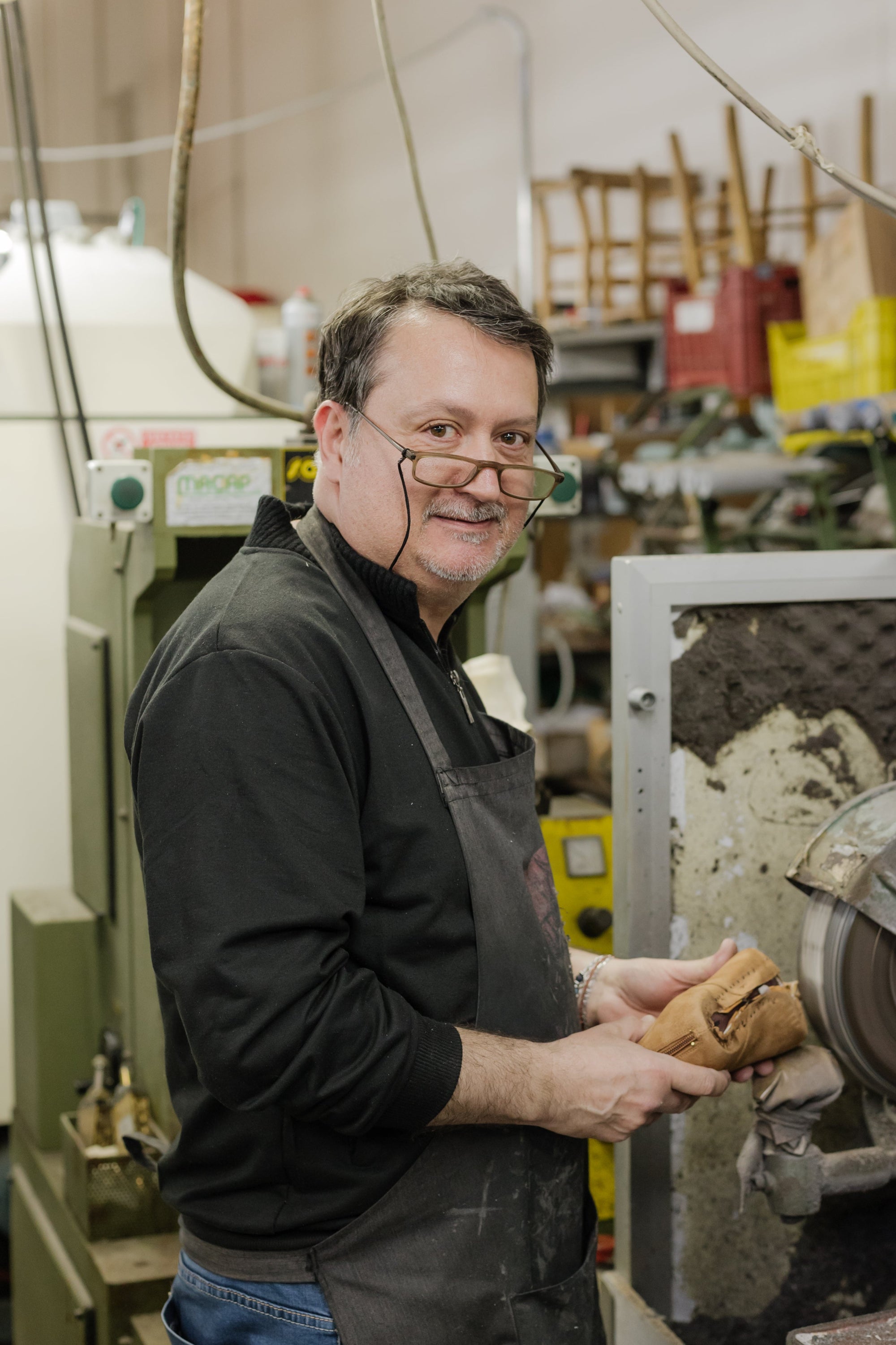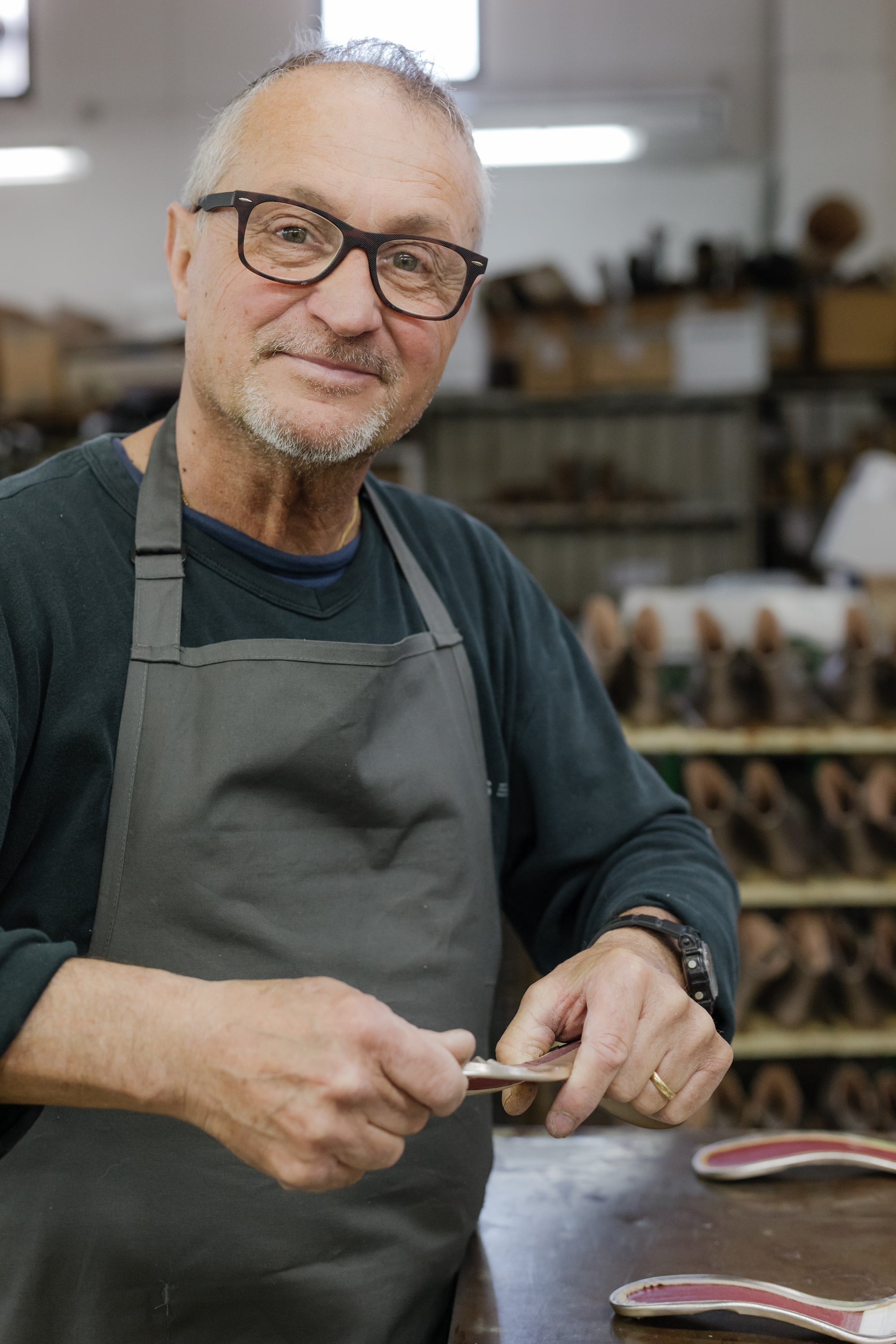 Elk paar Atelier Content schoenen gaat door de vaardige handen van onze collega’s in de ateliers in Italië. Zij brengen de ontwerpen van Nele tot leven en werken elke schoen tot in de puntjes af.